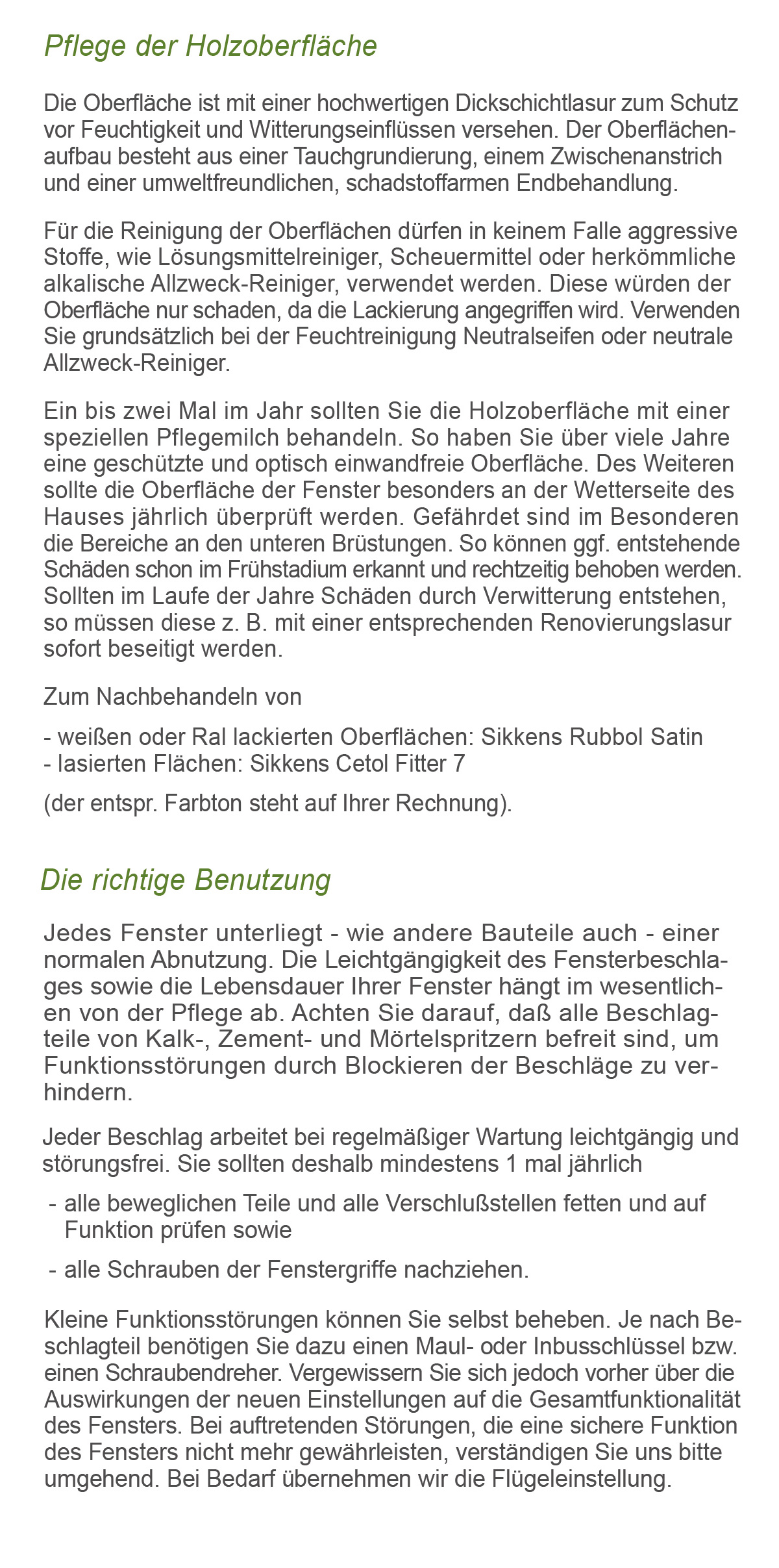 Pflegehinweise